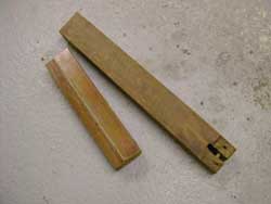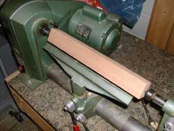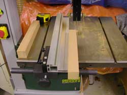 Then you cut a couple of 1.5" square blanks on the bandsaw.