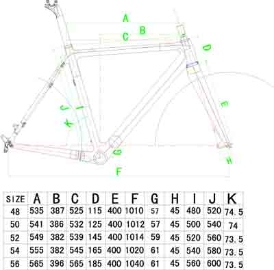 This is the frame sizes on offer for the FM089 CycloX frame. I chose the 56.