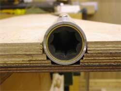 Then I routed the remaining clearance for the sterntube in this bonded assembly before