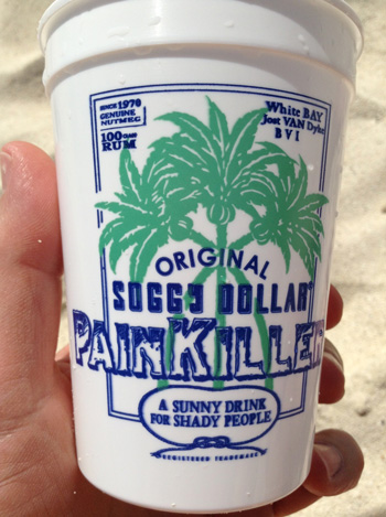 This is White Bay, Jost van Dyke, home to the 'Soggy Dollar Bar'.