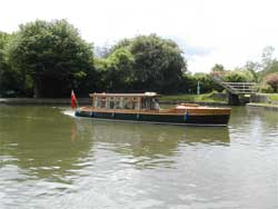 An unusual sight amongst narrow boats, a classic launch at the Dundas Aquaduct.