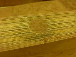 Then I marked out the position of the keel plugs and started boring the holes . It takes