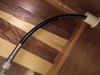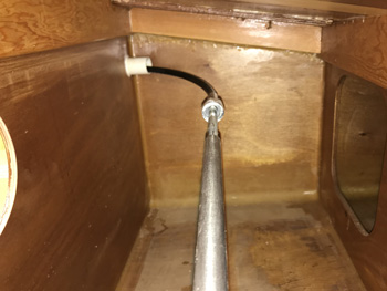 I assembled everything on the bench only to find that the nut at the tiller end of the cable didn't fit down the plastic conduit in the boat.